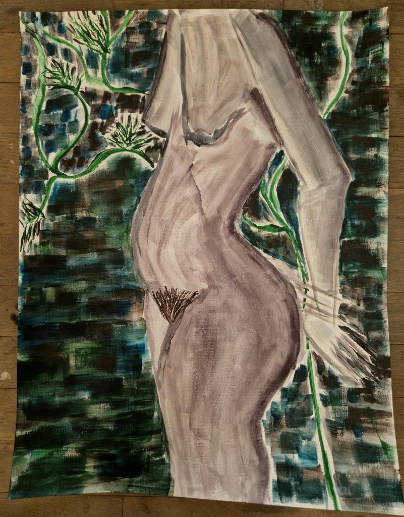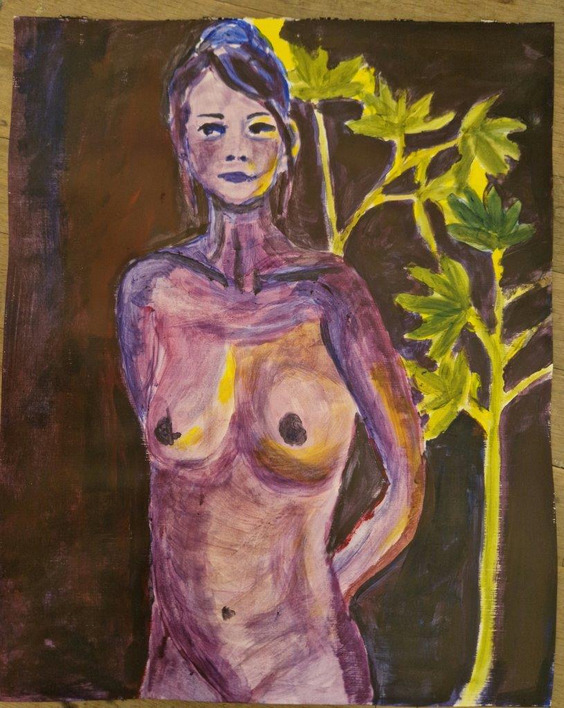 Nu dans un jardin au clair de lune. Travail d’après un herbier. 2 poses de 1h15.