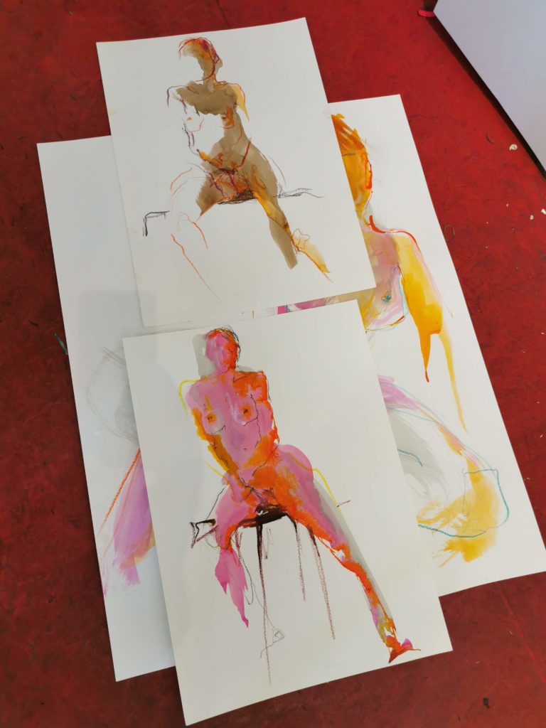 2 poses avec modèle de 1h15 avec les couleurs choisies plus tôt dans la matinée.