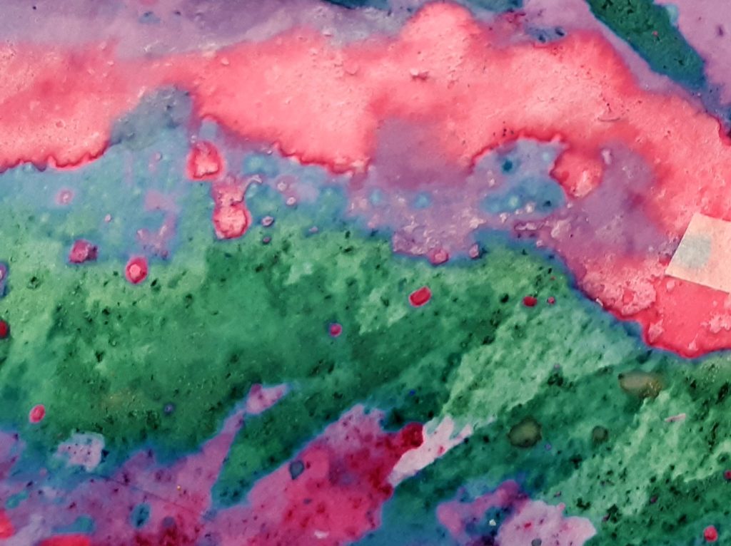 - Jeux d’aplats, taches, superpositions, dosage de l’eau et du blanc du papier.